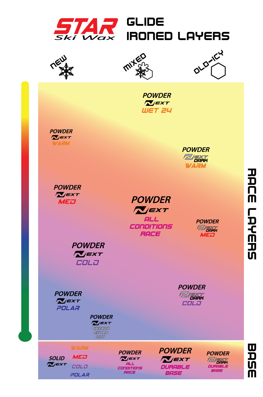 STAR NEXT on ensimmäinen valinta niille, jotka etsivät fluorittomia kilpatuotteita. Next on kehitetty alusta alkaen käyttämällä hyväksi todistettuja raaka-aineita ja lisäaineita optimaalisissa suhteissa, jotta saavutetaan vertaansa vailla oleva kilpailusuorituskyky fluorivapaassa ympäristössä. NEXT tuotteet ovat jauheena tai kiinteänä silitysrautaa varten, sekä nestemäisenä (liquid) ja lohkona (block) pintakerroksiin. Jokainen levitysmenetelmä toimii hyvin yksin käytettynä, mutta sovelluksia kannattaa yhdistää kerroksittain, jotta saadaan täydellinen suorituskyky kilpailuun.